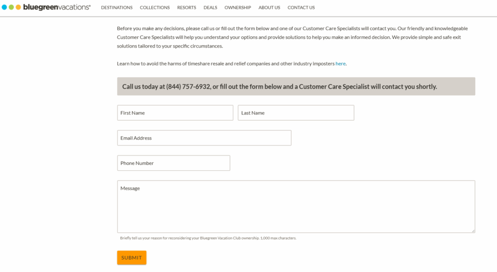 Bluegreen instructs owners to call Customer Care to inquire about exit solutions. This is the starting point if you want to pursue a Bluegreen exit program internally.